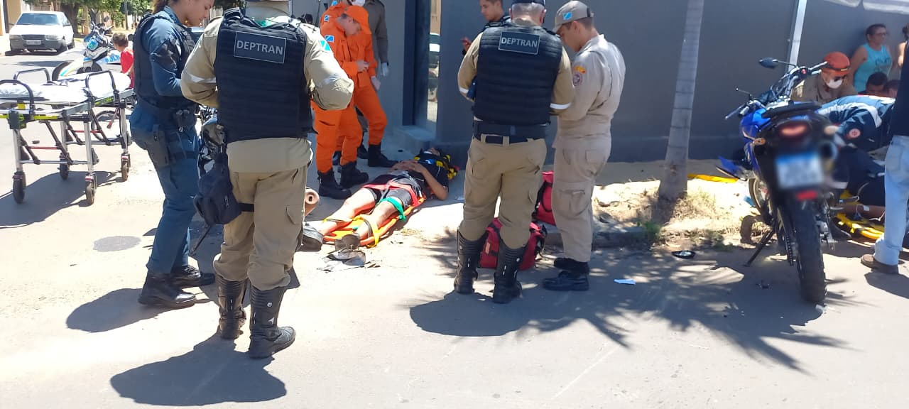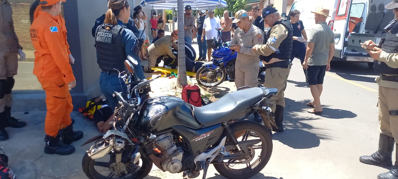 Por volta das 12h30, a colisão entre uma motocicleta Honda CG 160 e uma Yamaha XTZ 250 resultou em dois feridos. De acordo com informações apuradas no local, um dos motociclistas não teria respeitado a sinalização de “pare”, invadido a via preferencial e provocado o acidente.