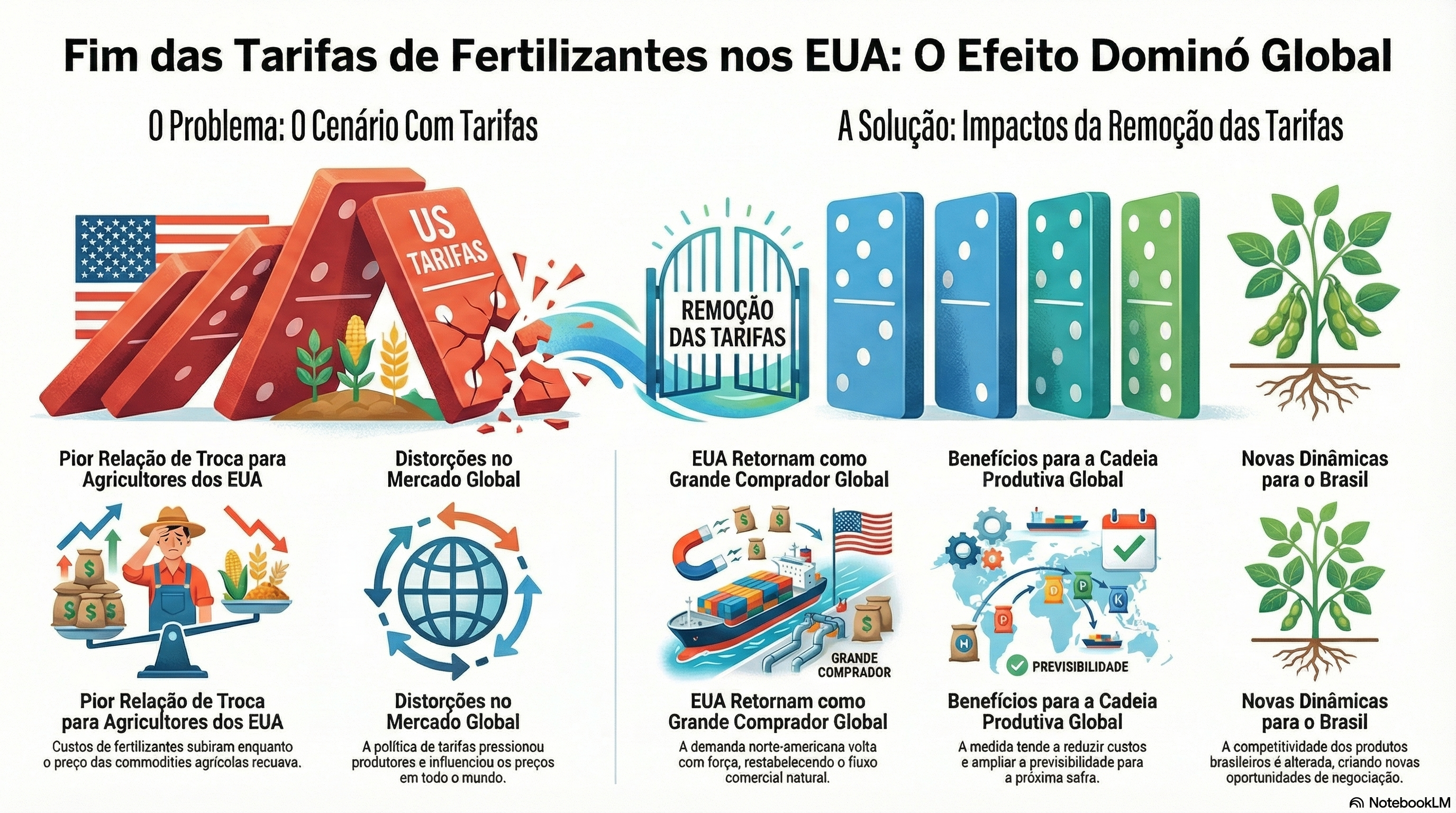O relatório semanal da Stonex, citado no programa, apontou que a remoção das sobretaxas deve restabelecer a atratividade do mercado dos Estados Unidos, tradicionalmente um dos maiores compradores globais de nutrientes. O impacto tende a ser rápido, já que o fluxo comercial retoma a rota natural, especialmente no fornecimento vindo do Canadá, principal produtor da região.