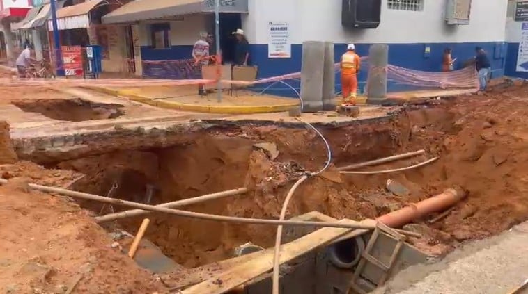 Enquanto isso, trabalhadores da empresa responsável pela obra de macrodrenagem atuavam na recuperação da galeria de captação de águas pluviais, danificada pelo temporal.