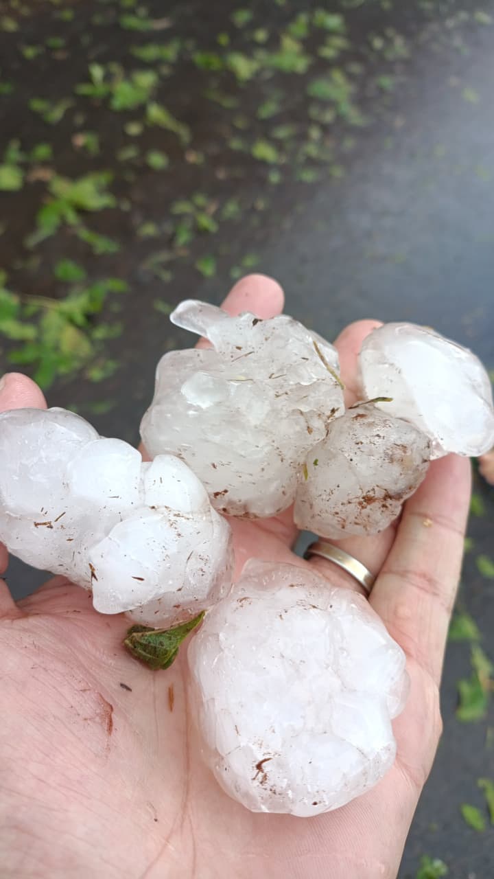 Imagens enviadas por moradores mostram casas e comércios com estruturas danificadas, além de vias completamente tomadas pelo gelo. Em Jales e Aparecida d’Oeste, o cenário não foi diferente: houve alagamentos, queda de galhos e registros de veículos atingidos pelo granizo.