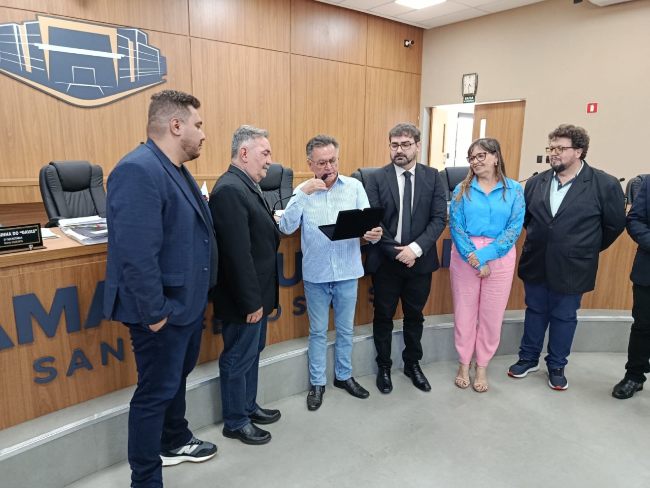 A homenagem, proposta pelo vereador Marcos Favaleça, foi aprovada por unanimidade e reuniu amigos, familiares e representantes da classe política local. Entre as autoridades presentes estavam o prefeito Evandro Mura e os ex-prefeitos Armando Rossafa e Toninho Favaleça.
