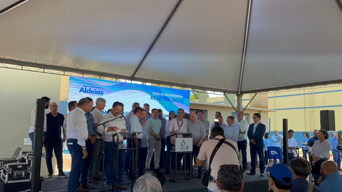 Além do projeto voltado às aldeias, o evento também marcou entregas e anúncios na área urbana. O governador em exercício destacou que Dourados já atingiu 90% de coleta e tratamento de esgoto e que o objetivo é superar esse índice em até dois anos.