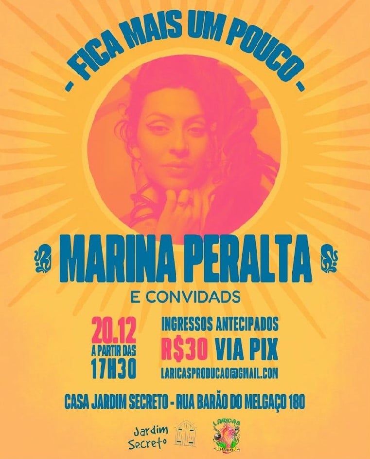 Marina Peralta escolheu o fim de ano para fazer o que mais gosta: voltar a Campo Grande, sua cidade natal, renovar afetos e cantar perto de quem faz parte da sua história. A volta vem acompanhada de festa. “Fica Mais Um Pouco” é o nome do encontro que a cantora e compositora promove no quintal da Casa Jardim Secreto, no centro da capital.