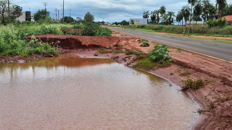O órgão ainda pede tutela de urgência, alegando que as erosões colocam em risco motoristas e moradores. As chuvas intensas têm invadido a pista, provocando aquaplanagem, formação de poças e favorecendo a proliferação do mosquito da dengue.