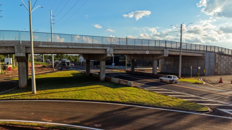 Localizado sobre o anel viário, o viaduto interliga as regiões Leste e Norte da Capital e inclui quatro rampas de acesso, duas rotatórias, ciclovia, passeios para pedestres e um novo sistema de drenagem urbana. O projeto foi autorizado pela Prefeitura de Campo Grande, com apoio da ANTT, DNIT e Motiva Pantanal, concessionária responsável pela rodovia.