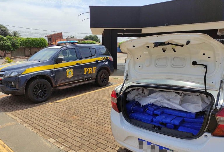 Em Bataguassu, a PRF apreendeu 245 quilos de maconha em um Ford Ka. O motorista confessou que levaria o entorpecente de Guaíra (PR) até São Paulo. Ele e uma passageira foram presos.