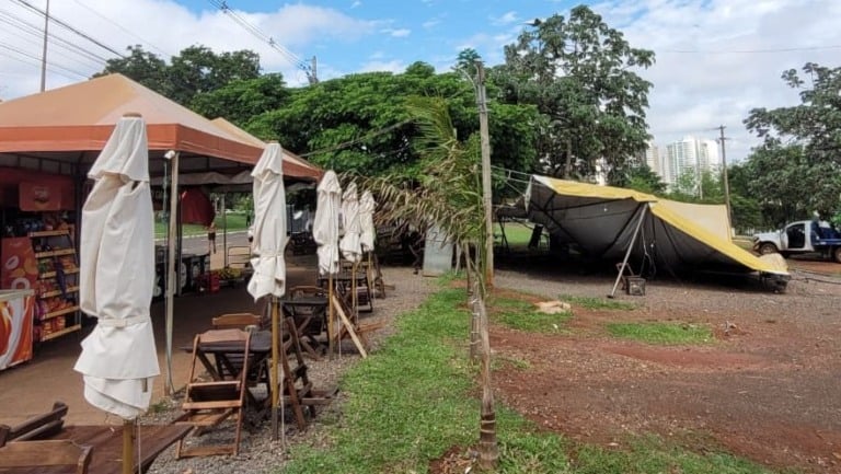 Ela contou que depois da ventania, precisou encerrar o atendimento e que só nesta segunda-feira (3) voltou ao local para fazer o levantamento dos estragos da chuva. “Agora é começar de novo”, relatou.