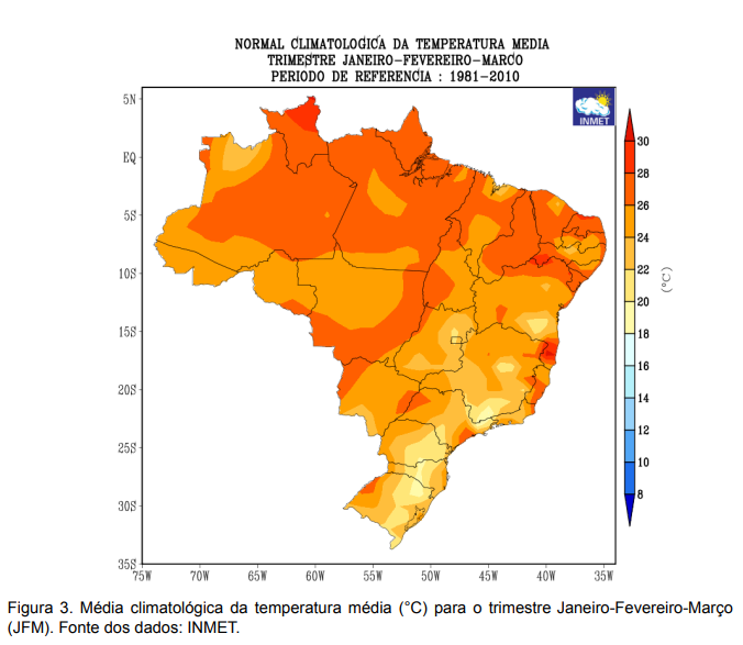 As temperaturas médias devem ficar entre 24 °C e 26 °C em grande parte de Mato Grosso do Sul, com registros mais elevados nas regiões norte e nordeste, onde os termômetros podem variar de 26 °C a 28 °C. No extremo sul, as médias ficam mais amenas, entre 22 °C e 24 °C.