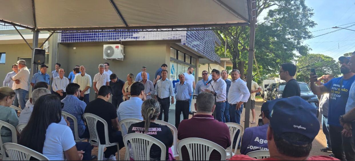 A primeira agenda, às 7h30, foi a entrega da obra de ampliação e melhorias do prédio de atendimento ao cliente da Sanesul (Empresa de Saneamento de Mato Grosso do Sul), no distrito de Vilas Vargas.
