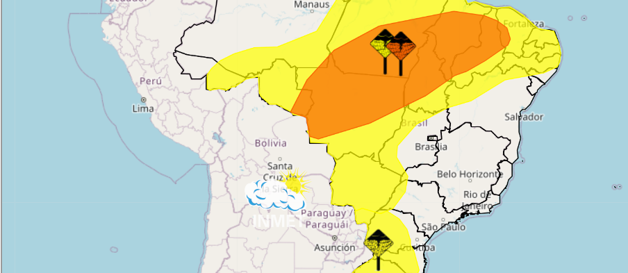 Dourados está um aviso emitido pelo Instituto Nacional de Meteorologia (Inmet) de perigo potencial para chuvas intensas, com validade até às 10 horas de terça-feira (23).