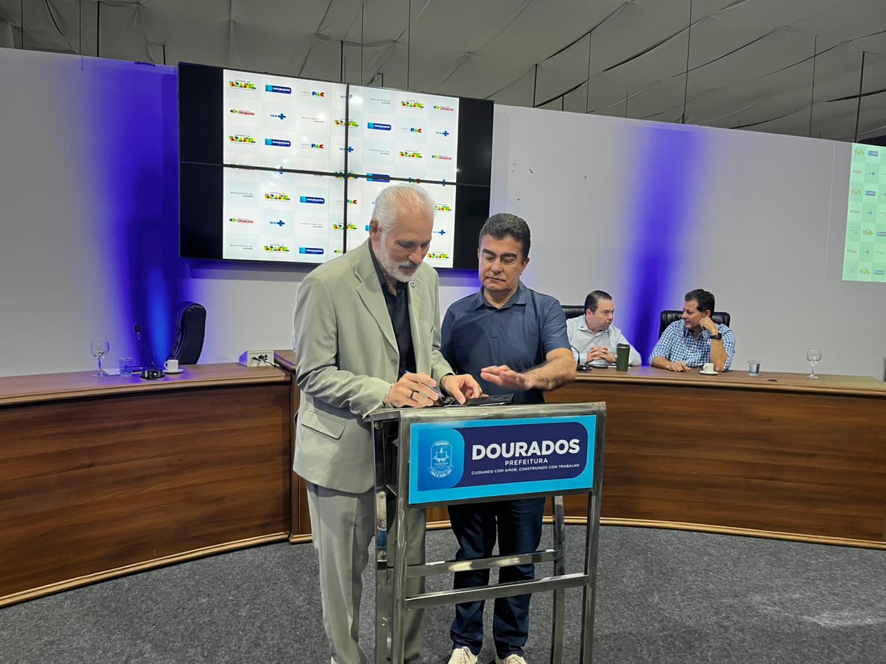 As obras da Policlínica Regional de Dourados já estão autorizadas a serem iniciadas. Na manhã desta sexta-feira (06), houve a assinatura da Ordem de Serviço na Câmara de Vereadores de Dourados. A partir dessa assinatura está autorizado o início das obras, o encontro contou com a participação de diversas autoridades, entre elas o representante do Ministério da Saúde, Ronaldo de Souza Costa, e o prefeito de Dourados, Marçal Filho.