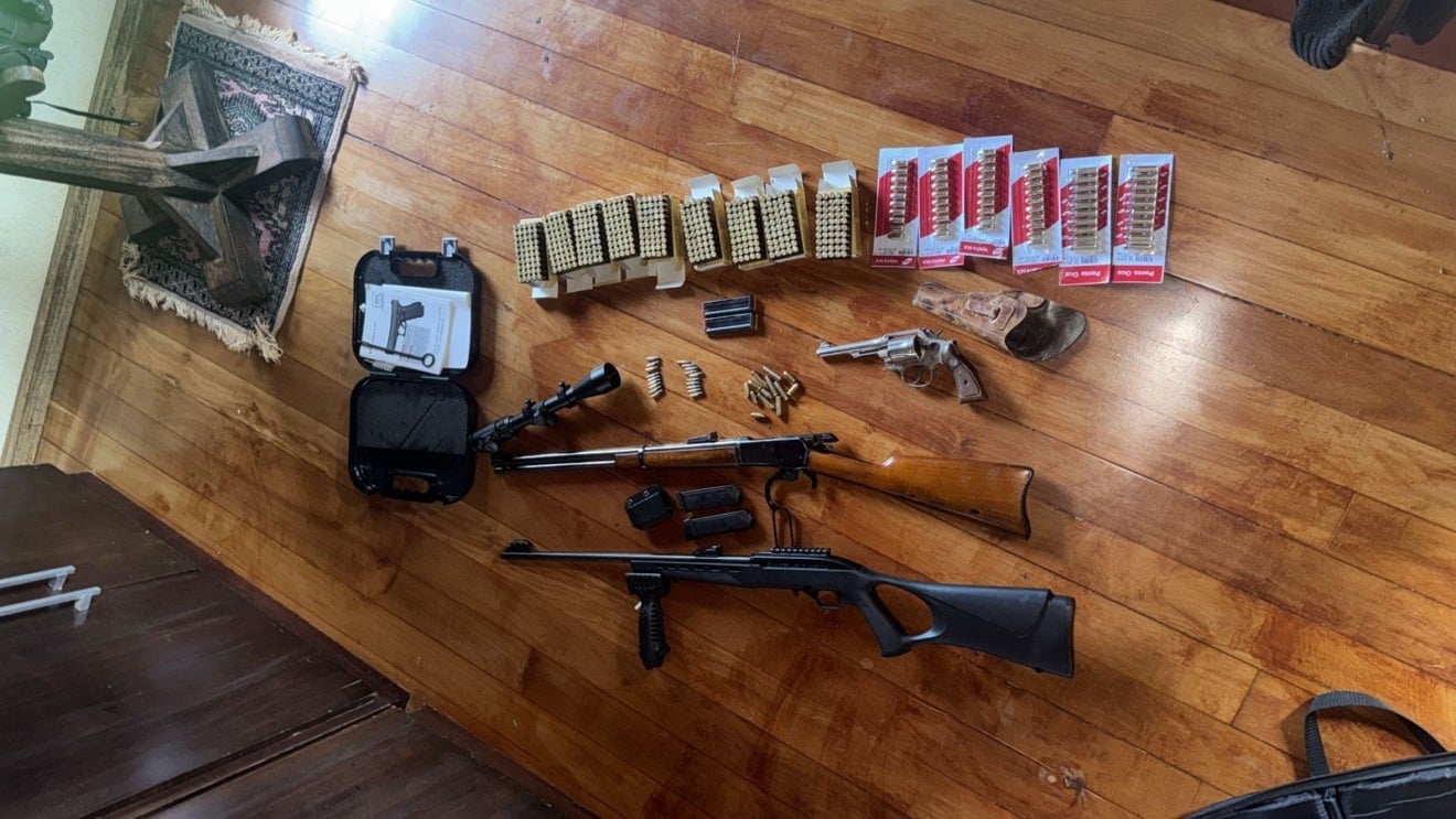 Segundo as informações policiais, as diligências foram realizadas por uma equipe da Seção de Investigações Gerais (SIG) da 1ª DEAM e uma equipe da Delegacia de Sidrolândia, que atuaram de forma integrada para o cumprimento da ordem judicial. Durante as buscas, em uma propriedade rural, foram localizadas e apreendidas três armas de fogo, sendo um revólver calibre .38, uma carabina calibre .38 e um rifle calibre .22, além de grande quantidade de munições de diferentes calibres, carregadores, luneta e outros acessórios relacionados a armamento.