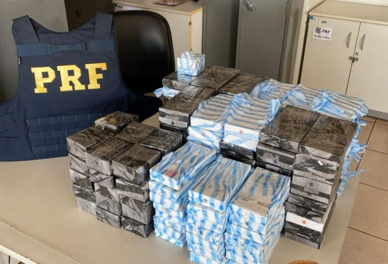 A Polícia Rodoviária Federal apreendeu na manhã desta quinta-feira (23), em Dourados, mais de R$ 1,7 milhão em iPhones contrabandeados do Paraguai. O flagrante envolveu um casal, morador no município, que levava a carga dentro de um carro Volvo.