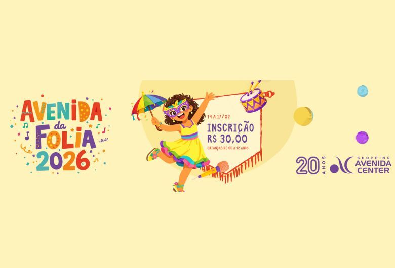 O Shopping Avenida Center apresenta o “Avenida da Folia 2026”, que acontece entre os dias 14 e 17 de fevereiro. Segundo a assessoria, o evento vai transformar a Praça Central, que fica atrás do Piazito Brinquedos Infláveis, no ponto de encontro oficial das famílias douradenses, unindo a nostalgia dos bloquinhos de rua ao conforto e à segurança do ambiente de shopping.