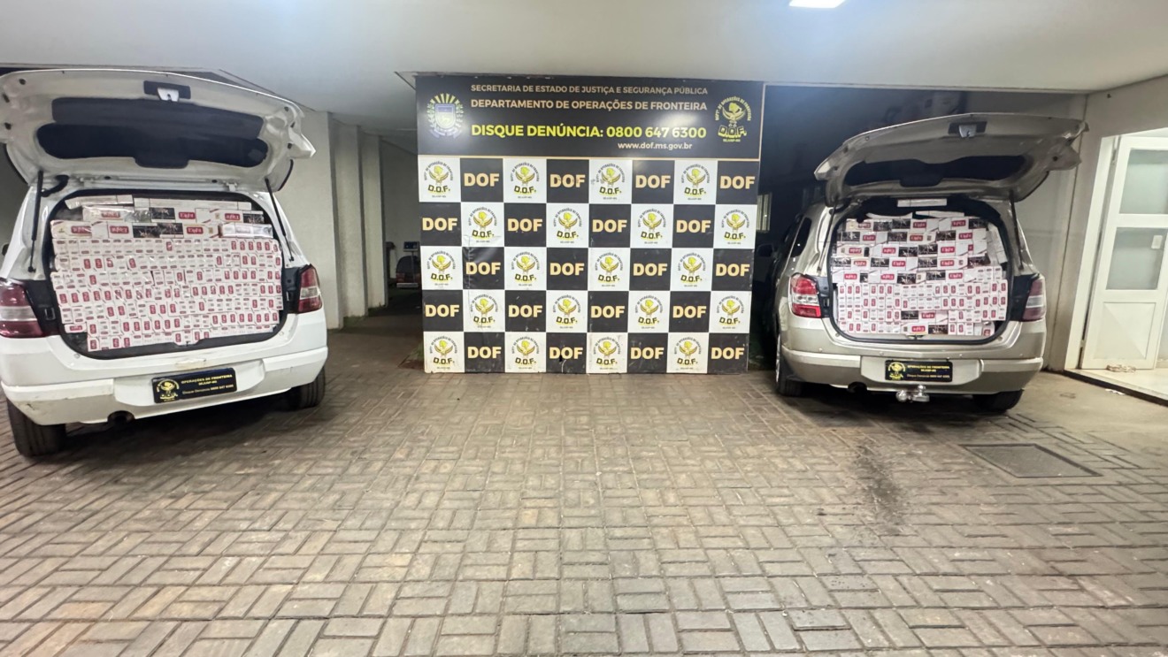 Dois veículos carregados com 4.400 pacotes de cigarros contrabandeados do Paraguai foram apreendidos por policiais militares do DOF (Departamento de Operações de Fronteira) neste domingo (1/2), no distrito de Vila Vargas, em Dourados. Na ação, ninguém foi preso. O material apreendido foi avaliado em aproximadamente R$ 280 mil.