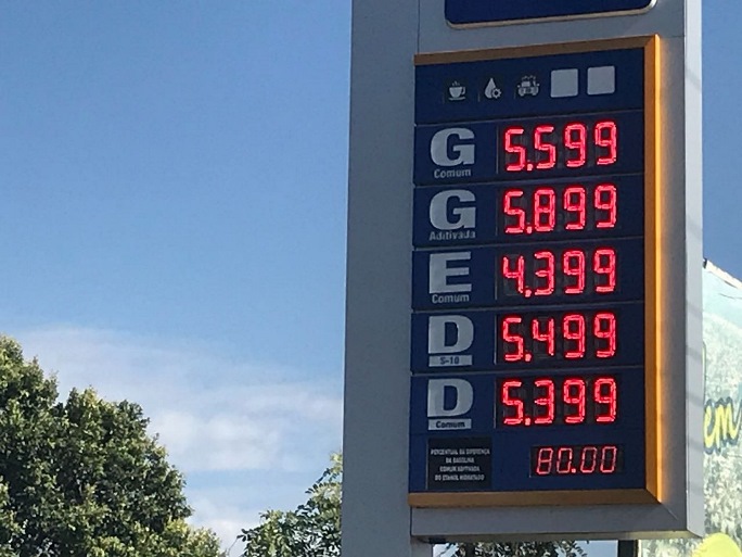 Em um posto, o litro da gasolina custava R$ 4,39 até esta quarta-feira (23). Hoje, subiu para R$ 5,89 a aditivida e para R$ 5,59 a comum. O etanol também foi reajustado em menos de 24 horas, de R$ 3,59 para R$ 4,39.