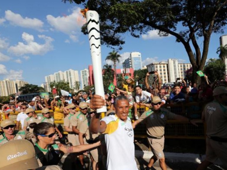 A tocha de Cruz foi acesa no início da Avenida Central da cidade. Antes mesmo de receber o fogo olímpico, Cruz já não conseguia conter a emoção e até chorou. “É um grande momento para o esporte, um momento do povo brasileiro. A chama está acesa”, disse o atleta.