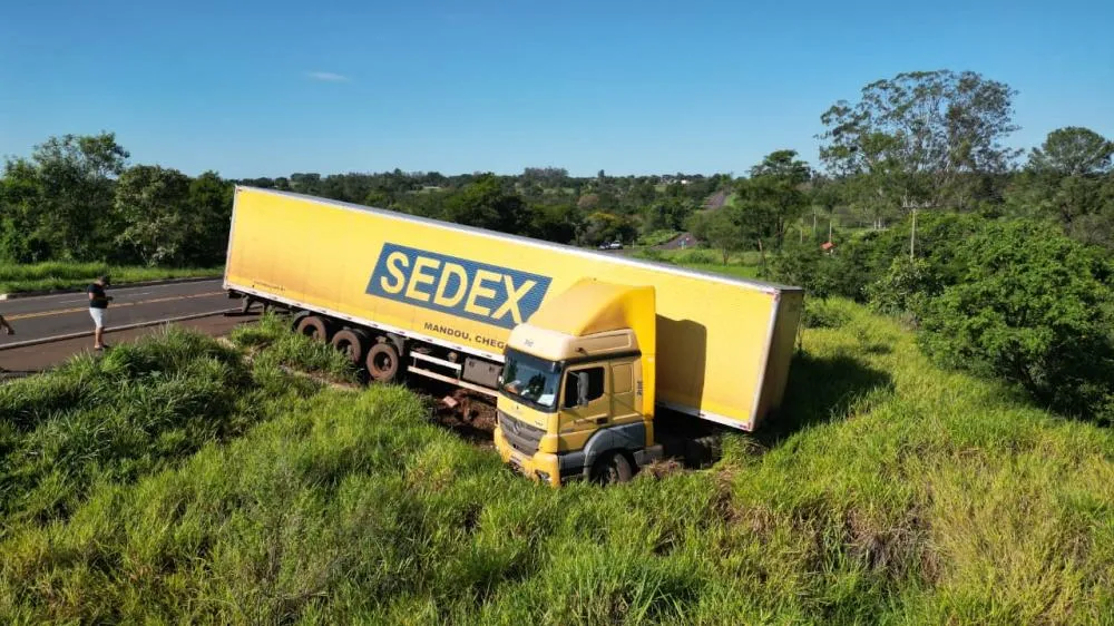 De acordo com informações apuradas, o veículo seguia no sentido Mato Grosso do Sul–São Paulo quando o motorista perdeu o controle direcional. A carreta atravessou a pista contrária e acabou saindo da rodovia, parando às margens da via. Apesar da gravidade aparente do acidente, não houve registro de feridos.