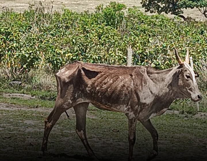 Durante a inspeção, realizada em conjunto com o IAGRO, verificou-se que, dos 457 animais — entre vacas, bois, novilhas e bezerros —, a maioria apresentava extrema magreza, alguns em estado cadavérico e com sinais evidentes de subnutrição. Um bezerro estava tão debilitado que não conseguia se manter em pé. Além disso, foi encontrado um animal morto no pasto, quatro carcaças recentes e diversas ossadas antigas em uma área de reserva, indicando mortes recorrentes por desnutrição.