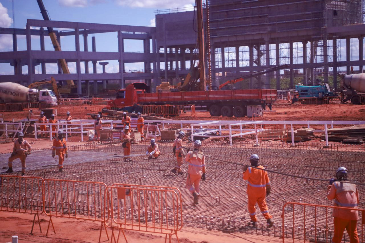 Antes da cerimônia de lançamento da pedra fundamental, as autoridades e convidados participaram de uma visita ao canteiro de obras.