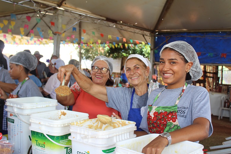 O cardápio contou ainda com carne moída, quibebe e o tradicional macarrão preparado por Normina Maria de Souza, conhecida como Norminha do Macarrão, figura popular em Aparecida do Taboado (MS) e região, reconhecida por suas massas artesanais.