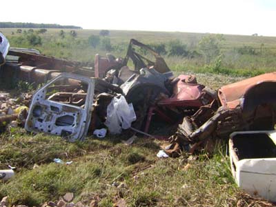 Havia carcaças de veículos depositados a céu aberto, em área brejosa, com vegetação típica de várzea e sedimentos sólidos (areia de entulho, plásticos, ferrugem) sendo carreados para o leito do córrego Saltinho. O responsável pelo empreendimento não possuía nenhum dos documentos exigidos pela legislação vigente, que autorizasse tal empreendimento.