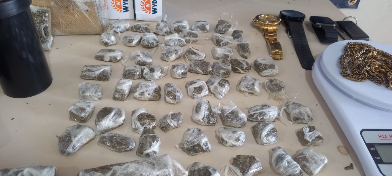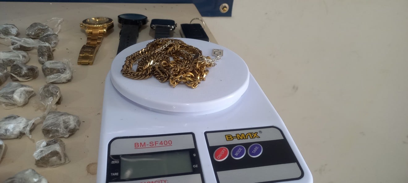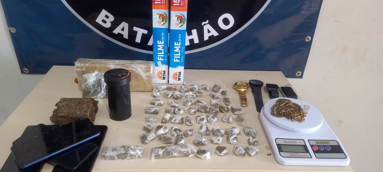 No local foram encontrados R$ 200 em dinheiro, uma balança de precisão, dois rolos de plástico filme, quatro celulares, três relógios, uma cápsula deflagrada de calibre .32, três tabletes de maconha totalizando 1.347 gramas, 57 porções prontas de maconha pesando 287 gramas, sete porções de crack (12,4 gramas) e 18 porções de cocaína (8,3 gramas).