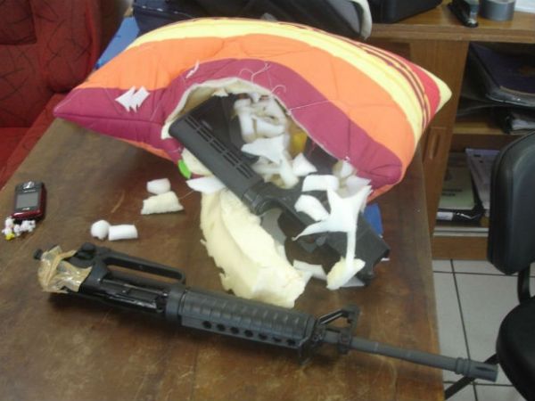 Uma mulher de 19 anos foi presa com um fuzil calibre 556 escondido dentro de um travesseiro, na noite de quinta-feira (16) em Guaíra, na região Oeste do Paraná. De acordo com as informações da Polícia Rodoviária Federal (PRF), a jovem estava em um táxi paraguaio e foi abordada durante uma fiscalização de rotina. A arma é de uso exclusivo das Forças Armadas.