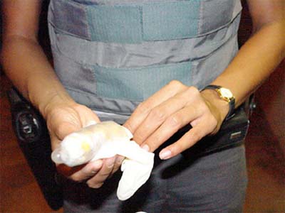 Tati escondia 60 gramas de crack num tubo à base de preservativo na vagina. Revistada, a mulher negou transportar droga, mas acabou confessando quando era levada para ser submetida a exame de Raios-X no pronto-socorro.