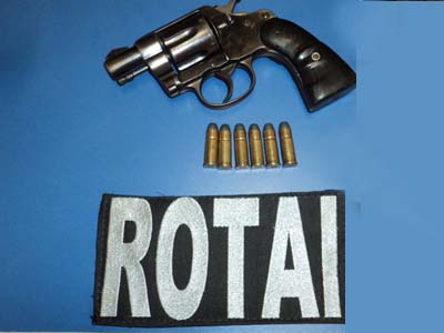 Com a liberação do pai, proprietário da residência, os policiais militares entraram na residência e realizaram a apreensão da arma de fogo, um revolver calibre 44 municiado com seis munições intactas, sendo que a referida arma não apresentava registro no sistema policial.