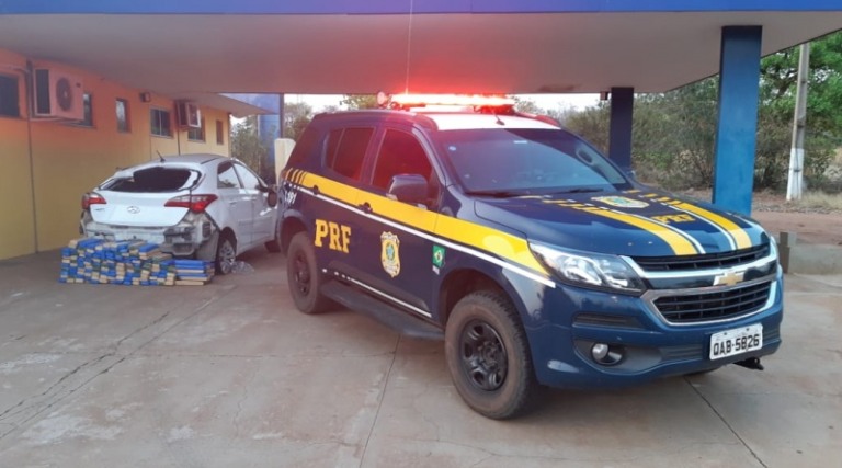 Durante a perseguição o motorista perdeu o controle da direção, saiu da pista e tombou o carro. O condutor e a passageira transportavam, no porta malas do carro, 126kg de maconha.