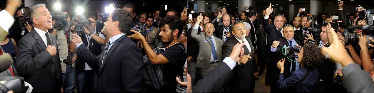 Advogados e manifestantes contrários ao pedido entoavam palavras de ordem, como "Não vai ter golpe". Os favoráveis ao afastamento de Dilma respondiam com "Fora, PT". Houve tumulto e empurrra-empurra dos dois lados.
