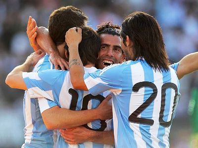 Inspirado, Messi tabelou com Tevez e abriu o placar. Logo aos dez minutos, ele saiu na cara de Reina e encobriu o goleiro com um belo toque. O gol interrompeu um longo jejum do jogador do Barcelona pela seleção, após ele passar em branco na Copa. Para a sorte dos torcedores presentes ao Monumental, Messi não foi o único a se destacar.