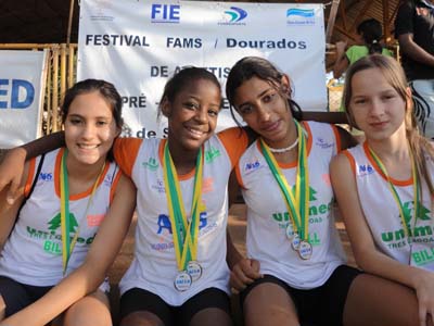 Não são apenas os atletas adultos que se destacam em Três Lagoas. O atletismo feminino de base, comandado pelo técnico Reynaldo Abrão Camargo, conquistou sete medalhas durante o Festival de Atletismo Pré-Mirim e Mirim (10 a 13 anos), realizado no último final de semana, no Centro de treinamento de atletismo de Dourados.