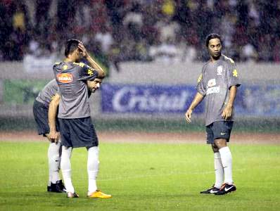 A seleção brasileira enfrenta a Costa Rica nesta sexta (7), às 22h (MS). No último treino antes do duelo desta noite, sob forte chuva em San José, o técnico Mano Menezes testou um nova dupla de laterais: Fábio, do Manchester United, e Adriano, do Barcelona, trabalharam como titulares nos lugares de Daniel Alves, do Barça, e Marcelo, do Real Madrid.