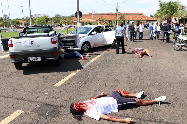 Equipes de socorro de diversos setores participaram, nesta quinta-feira (20), de uma simulação de acidente de trânsito com vítimas, em Três Lagoas. O curso ocorreu no Espaço Arenamix e contou com técnicos da Secretaria Municipal de Saúde, Secretaria Estadual de Saúde, Gerência Técnica Estadual do VIigidesastres da Coordenadoria Estadual de Vigilância em Saúde Ambiental (CVA), Coordenadoria Estadual de Defesa Civil.