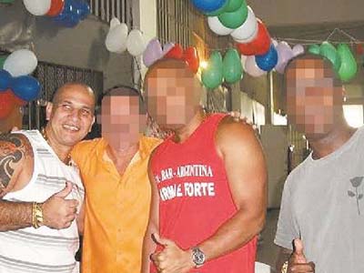 Fotografias mostram o ex-PM circulando livre pelas dependências do BEP, usando joias de ouro, como relógio, anel, pulseira e cordão, durante a festa, realizada em setembro de 2010. Para decorar o ambiente, bolas de aniversário foram colocadas no corredor de uma das alas, bem próximo às celas.
