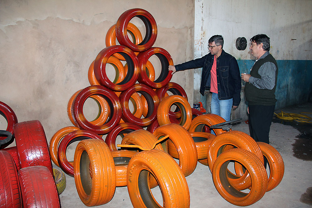 Promovido pela Agepen desde 2017, o projeto “Arte com Pneus” já retirou do meio ambiente mais de 4,2 mil pneus sem uso, que se transformaram em brinquedos para parques de diversões. O projeto foi idealizado e é coordenado pelo agente penitenciário Vinícius Saraiva de Oliveira e pelo técnico da Secretaria Municipal de Educação (Semed), Felipe Augusto da Costa Souza.