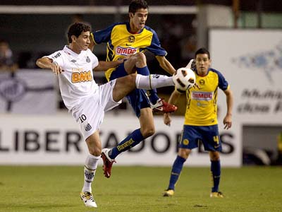 Em uma partida de pouca emoção, uma finalização certeira de Paulo Henrique Ganso decretou a vitória do Santos na ida das oitavas de final da Copa Libertadores da América. Sob os olhos de Pelé, que pela primeira vez em 2011 compareceu à Vila Belmiro, o meia camisa 10 marcou de fora da área e ajudou o time de Muricy Ramalho a vencer o América-MEX por 1 a 0, levando a vantagem do empate para o duelo de volta, na próxima terça.