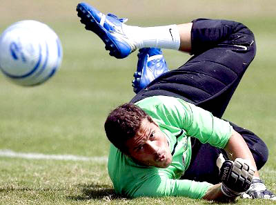 Os brasileiros ameaçaram com chutes de Robinho e Luis Fabiano.