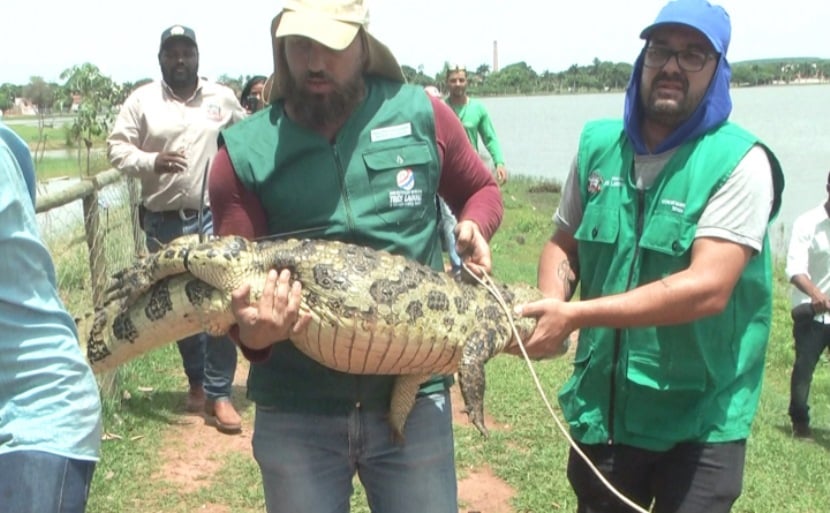 Três jacarés adultos foram retirados nesta semana da Lagoa Maior de Três Lagoas e levados para uma área de reserva em Brasilândia. A captura dos animais foi feita por técnicos da Embrapa e da Secretaria de Meio Ambiente.