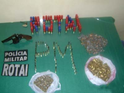 Foram apreendidos quatro adolescentes entre 15 e 17 anos e 70 munições calibre 12; 841 munições calibre 22; 350 munições calibre 38 e 32, além de 500 gramas de espoleta, um revolver calibre 38 e uma espingarda de pressão.