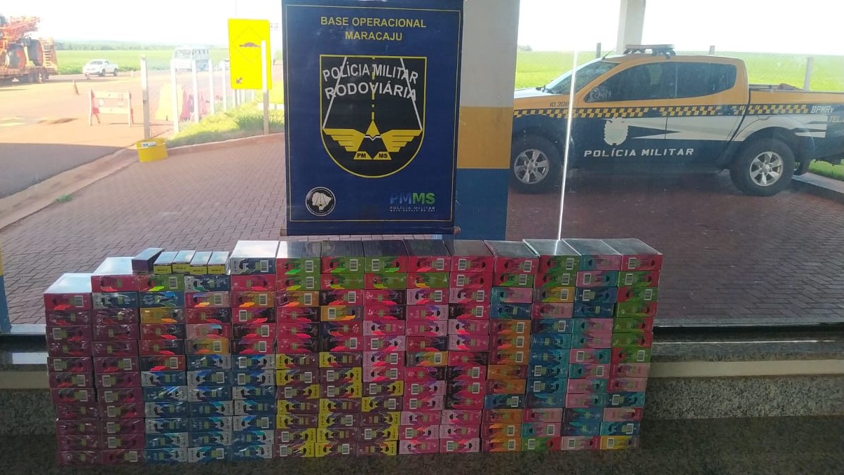 O Batalhão de Polícia Militar Rodoviária (BPMRv) apreendeu, na tarde de segunda-feira (5), uma carga de refis de cigarro eletrônico de origem estrangeira durante uma fiscalização na rodovia MS-460, em Maracaju, no sul de Mato Grosso do Sul.