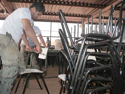 O trabalho de 12 internos do Instituto Penal de Campo Grande vai beneficiar milhares de crianças e adolescentes da Rede Estadual de Ensino com novas cadeiras e carteiras escolares utilizadas diariamente nas salas de aula. Por meio de uma parceria ente o Estado e a Associação Cristã Pais e Filhos, mais de mil kits escolares estão sendo reformados por detentos que cumprem pena em regime fechado no Instituto Penal da Capital. Em uma oficina montada dentro da instituição carcerária internos trabalham oito horas diárias para recuperar os móveis escolares que serão encaminhados novamente para as escolas.