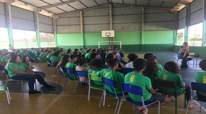 Por meio de palestras, gestoras especializadas sensibilizaram os jovens com conversas sobre a Lei Maria da Penha (que em agosto deste ano completará 13 anos) e informações sobre seus direitos, para que tenham a percepção e a consciência sobre o que configura a violência doméstica.