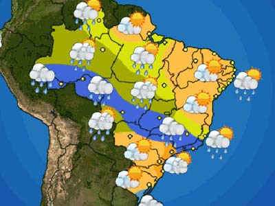 Norte – O tempo fica nublado e chuvoso no Acre, em Rondônia e no sudoeste do Amazonas. A temperatura diminui nessas áreas. Nas outras áreas do Amazonas e no sudoeste do Pará e do Tocantins, muitas nuvens alguns períodos de sol e pancadas de chuva a qualquer hora do dia. Nas outras áreas do Tocantins e do Pará e em Roraima, o sol aparece forte, as nuvens se formam e acontecem pancadas de chuva à tarde. No Amapá, no norte do Pará e no leste do Tocantins, sol forte e tempo firme.
