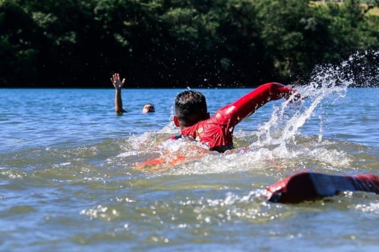 Em caso de perigo, é fundamental manter a calma e não nadar contra a correnteza. Para pedir socorro, é recomendado sinalizar com os braços para pedir ajuda e tentar boiar.