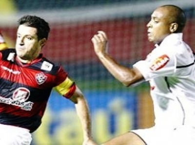 Mas logo a seguir foi a vez do Vitória não dar tempo para o Santos gostar do jogo. Em contra ataque rápido Egídio cruzou da direita e Edu Dracena viu a bola bater em seu braço. O zagueiro recebeu o segundo cartão amarelo, foi expulso e o árbitro marcou a penalidade máxima. Aos 27 minutos Schwenck, deslocou Felipe e fez o quarto do Vitória.