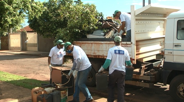 Serão recolhidos pneus, latas, potes, plásticos, lonas, tanques, tambores, galhos de árvores, folhas, restos de grama, tábuas e madeiras e recipientes em geral que acumulam água. Não serão recolhidos terra, entulhos de construção e galhos de árvores recentemente cortados.