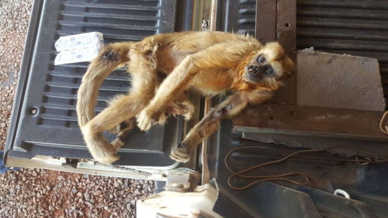 Uma macaca da espécie Bugio foi encontrada com muitos ferimentos por moradores de uma propriedade rural, a aproximadamente 15 quilômetros de Três Lagoas, na região da Ilha Comprida, na tarde desta terça-feira (23). Um deles acionou a Polícia Militar Ambiental (PMA) de Três Lagoas, que foi ao local com uma equipe do Centro de Controle de Zoonoses (CCZ). Segundo a PMA, animais da espécie são comuns na região.